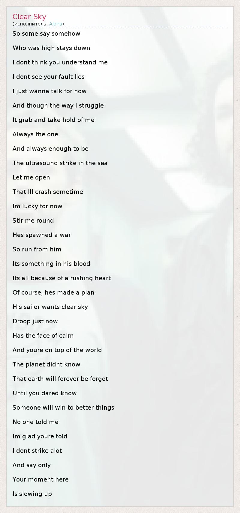 А как ты думаешь, о чем песня "Clear Sky" ?