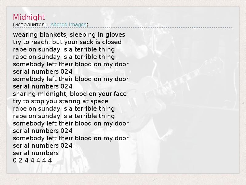 wearing blankets, sleeping in gloves try to reach, but your sack is closed rape on sunday is a terrible thing rape on sunday is a terrible thing somebody left their blood on my door serial numbers 024 somebody left their blood on my door serial numbers 024 sharing midnight, blood on your face try to stop you staring at space rape on sunday is a terrible thing rape on sunday is a terrible thing somebody left their blood on my door serial numbers 024 somebody left their blood on my door serial numbers 024 serial numbers 0 2 4 4 4 4 4