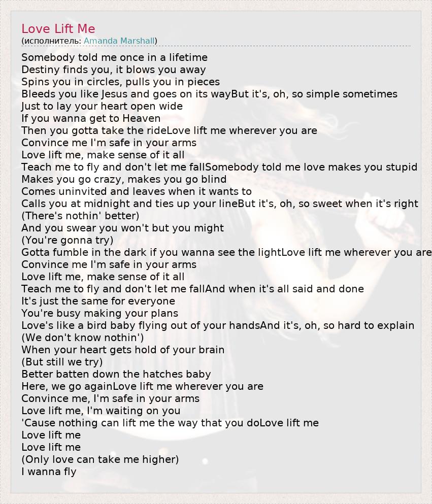А как ты думаешь, о чем песня "Love Lift Me" ?