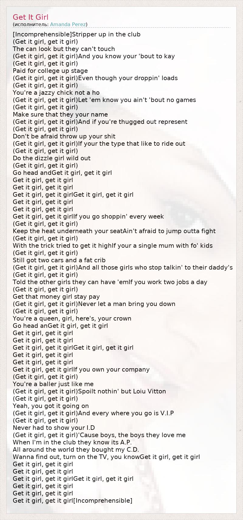 А как ты думаешь, о чем песня "Get It Girl" ?