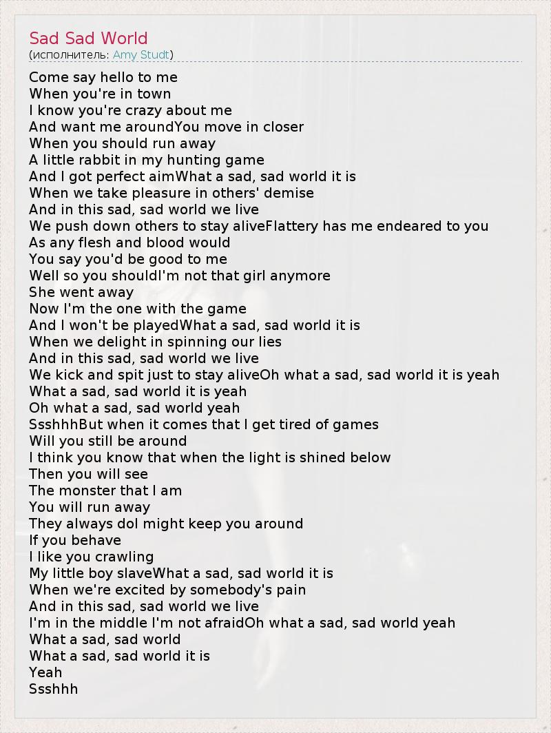 А как ты думаешь, о чем песня "Sad Sad World" ?