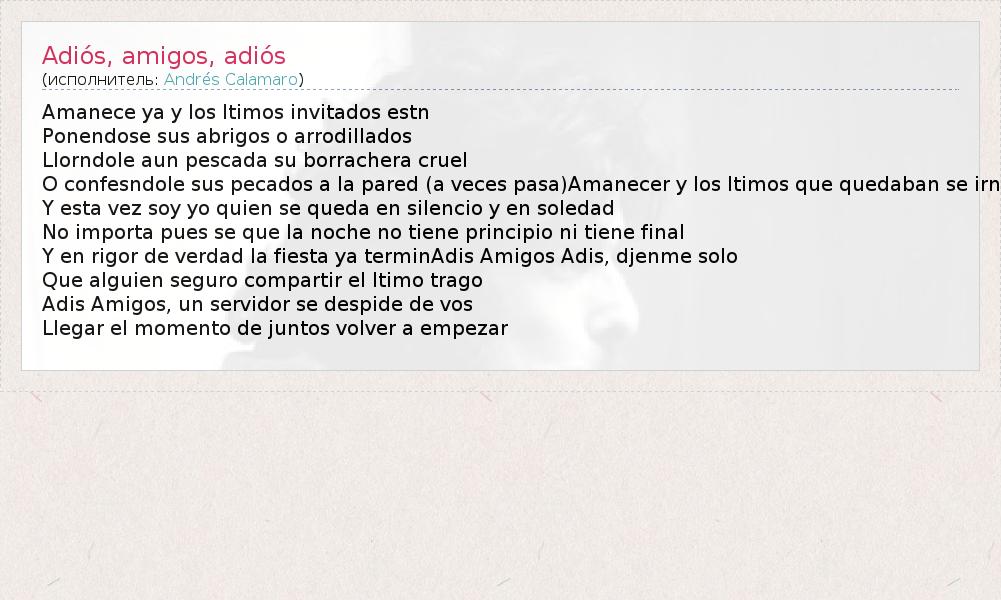 А как ты думаешь, о чем песня "Adiós, amigos, adiós" ?