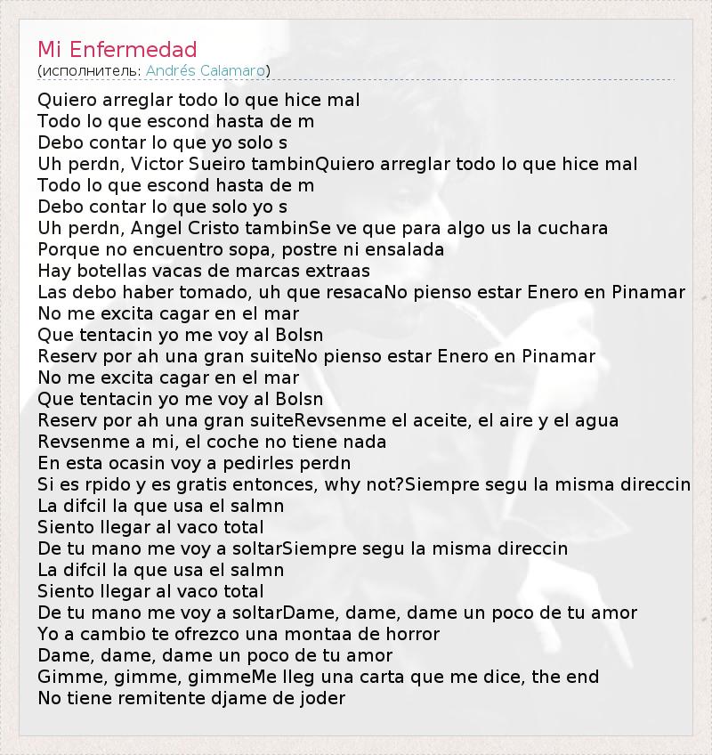 А как ты думаешь, о чем песня "Mi Enfermedad" ?