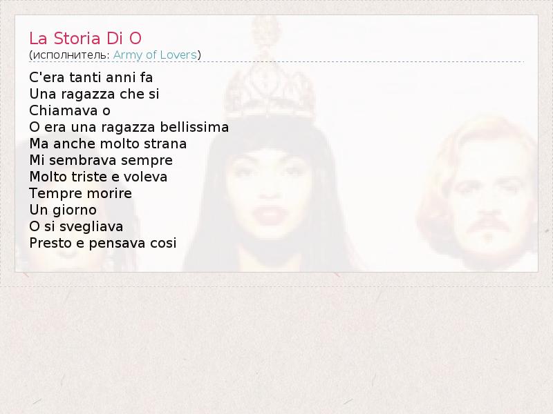 А как ты думаешь, о чем песня "La Storia Di O" ?