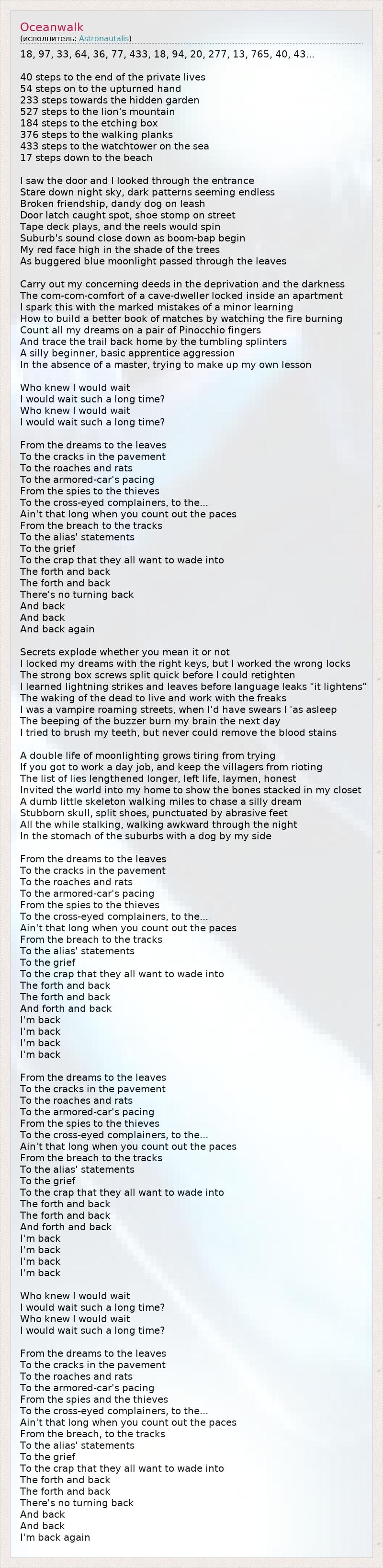 А как ты думаешь, о чем песня "Oceanwalk" ?