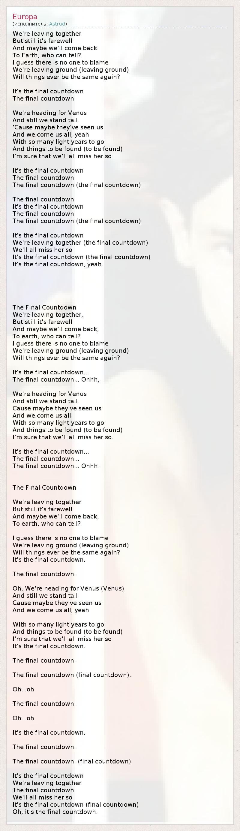 Финальный отсчёт** (перевод Евгений Алексеев-Пятыгин из Алма-Аты)