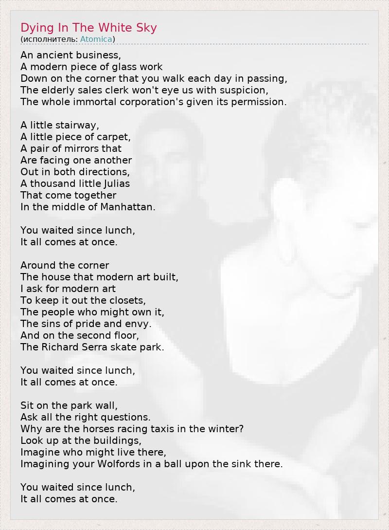 А как ты думаешь, о чем песня "Dying In The White Sky" ?