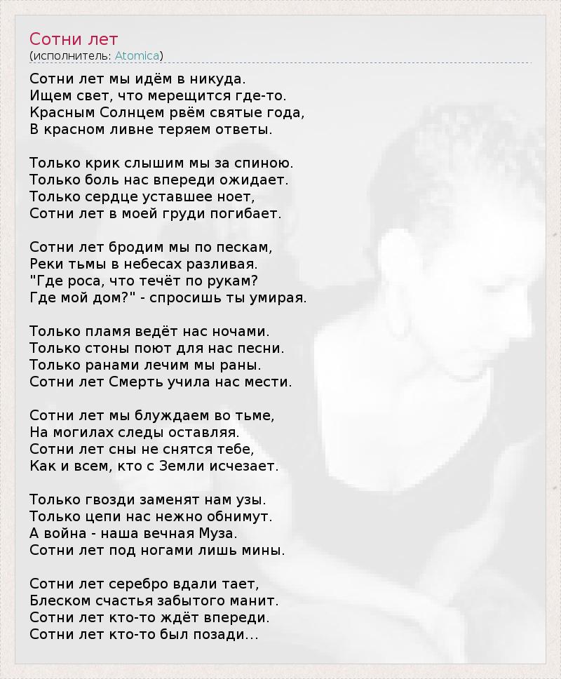 А как ты думаешь, о чем песня "Сотни лет" ?