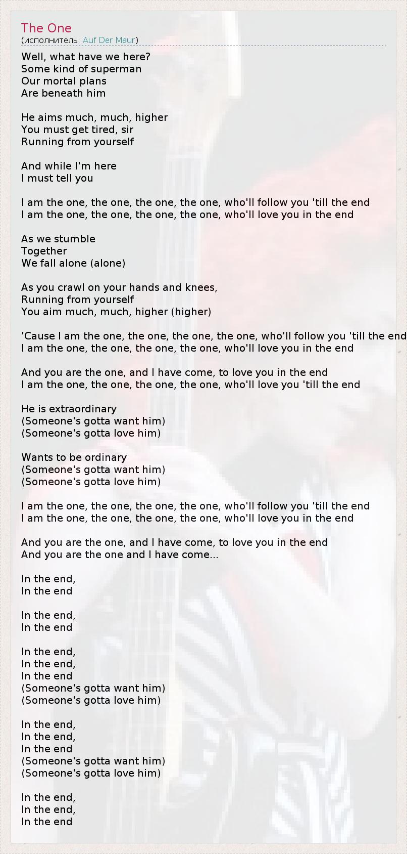 'Cause I am the one, the one, the one, the one, who'll follow you 'till the end