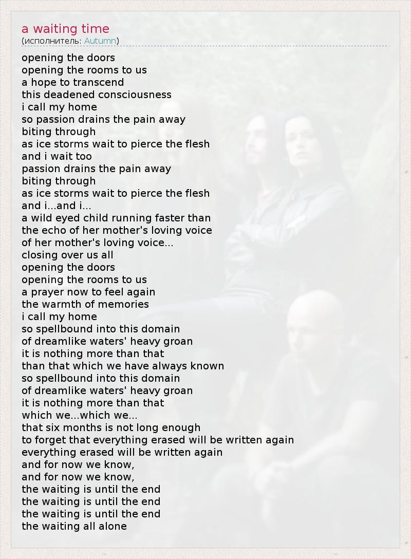 Это интересно:Существует несколько групп с названием Autumn1) Бельгийская minimal synth группа, появившаяся в начале 80-х, один из проектов Петера Бонна (Twilight Ritual, Linear Movement)2) Голландская группа “Autumn” образовалась в 1995 году и стала неотъемлемой частью расцветающей нидерландской рок-сцены. Её дебютный альбом “When lust evokes the curse”, выпущенный „Sony Music/Epic” в 2002 году, поместил “Autumn” на одну... продолжение
