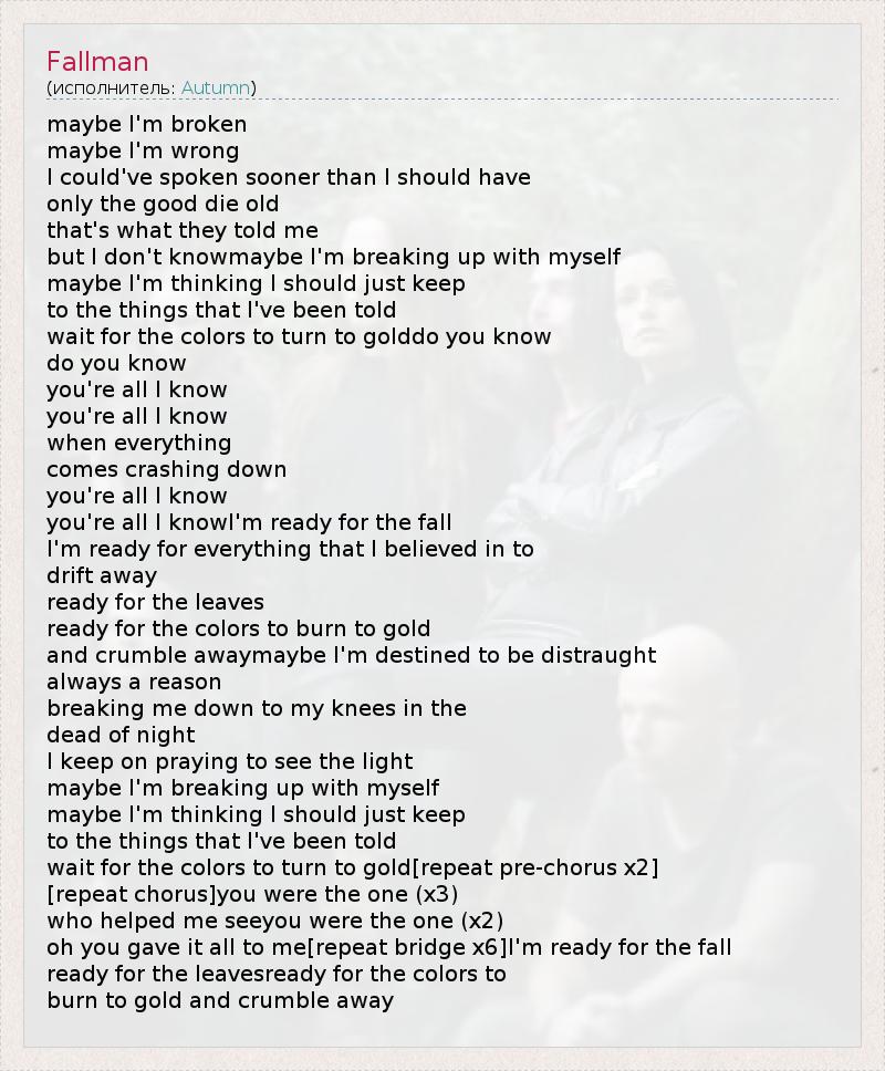 oh you gave it all to me[repeat bridge x6]I'm ready for the fall