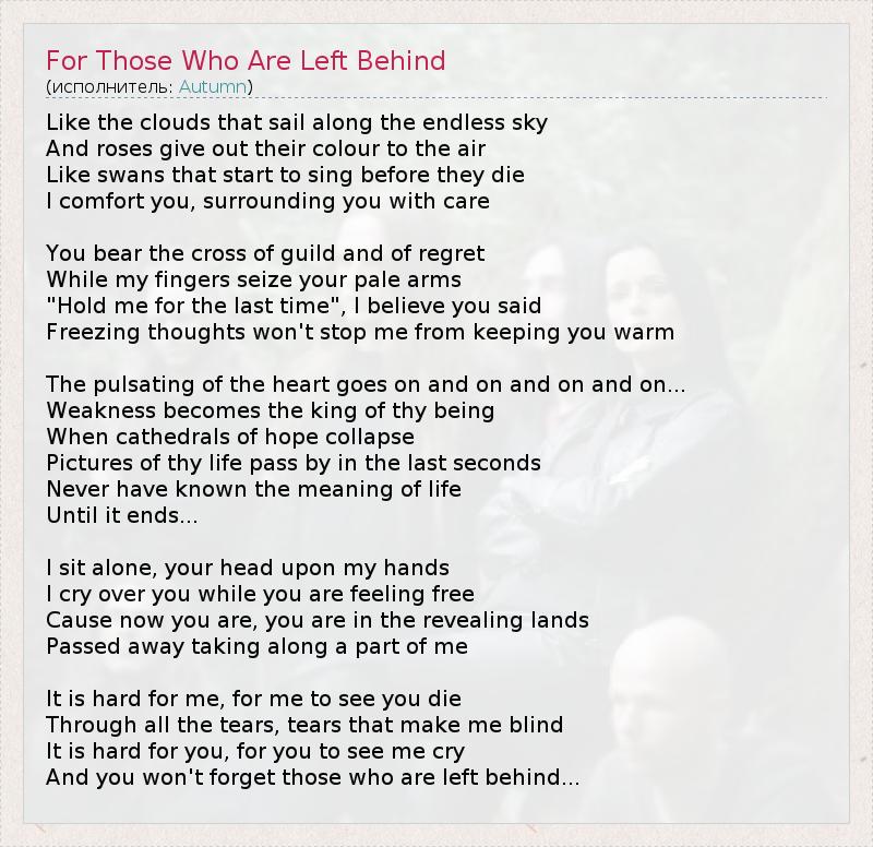 А как ты думаешь, о чем песня "For Those Who Are Left Behind" ?