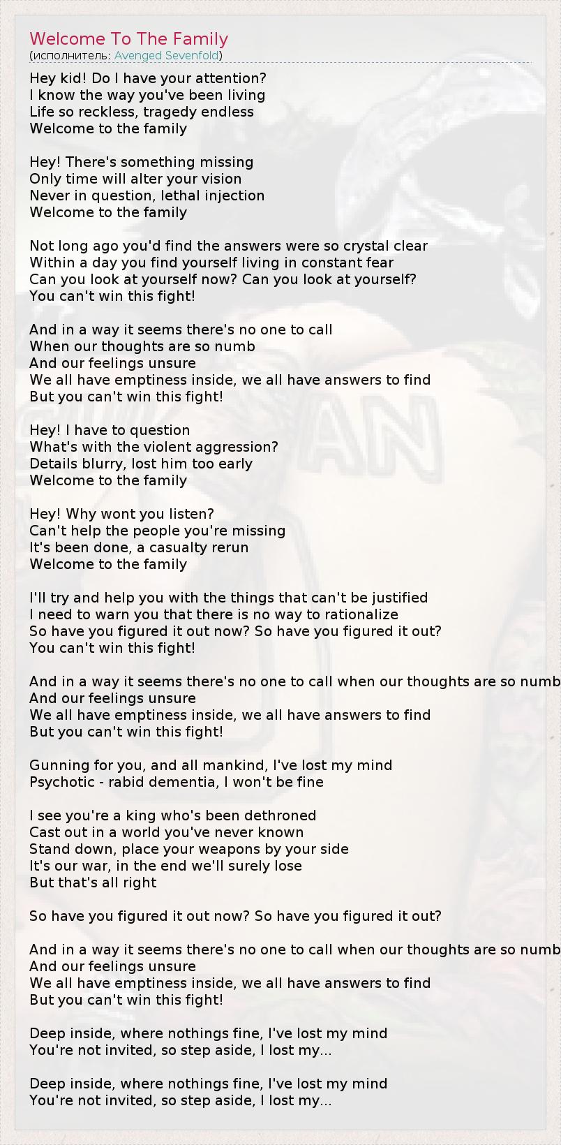 А как ты думаешь, о чем песня "Welcome To The Family" ?