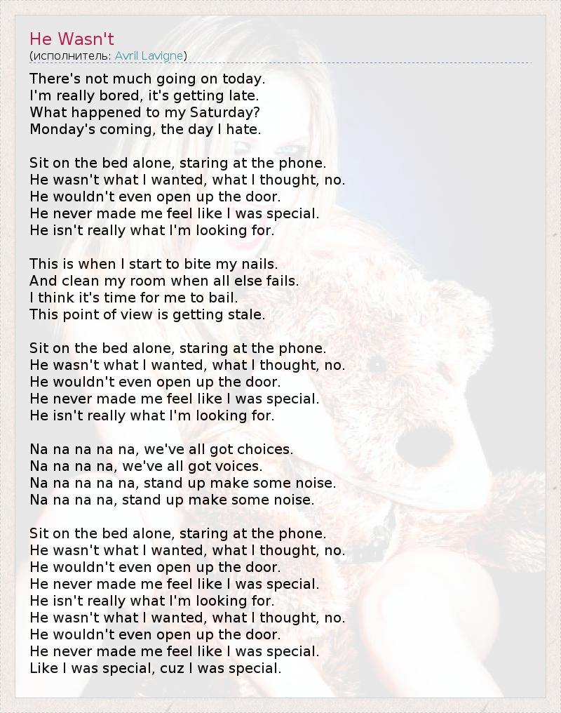 "He Wasn't" - песня о неудачных отношениях Лавин с парнем, который не был с ней откровенен и он был не тем, о ком она мечтала.