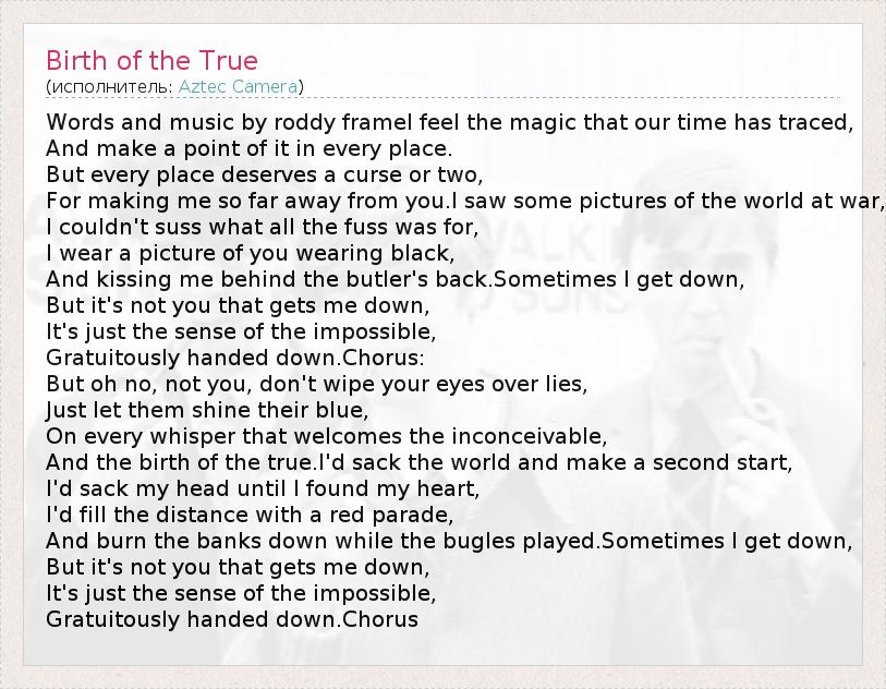 А как ты думаешь, о чем песня "Birth of the True" ?