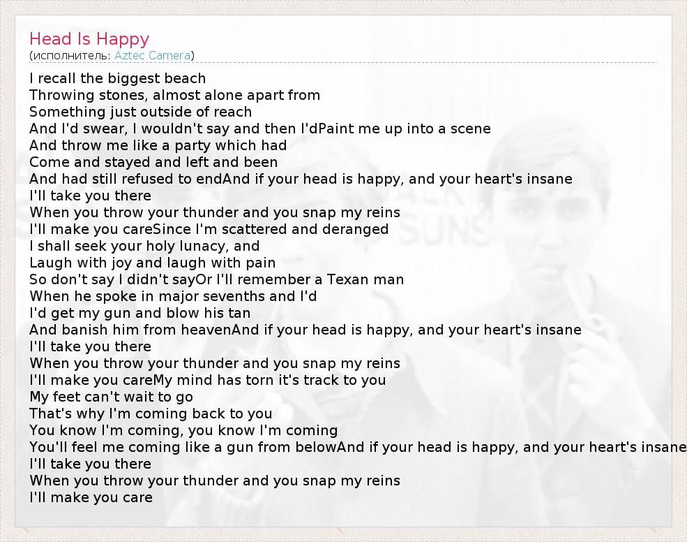 А как ты думаешь, о чем песня "Head Is Happy" ?