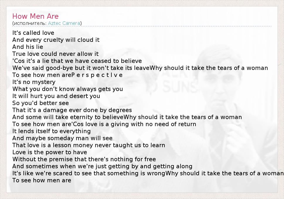 It's like we're scared to see that something is wrongWhy should it take the tears of a woman