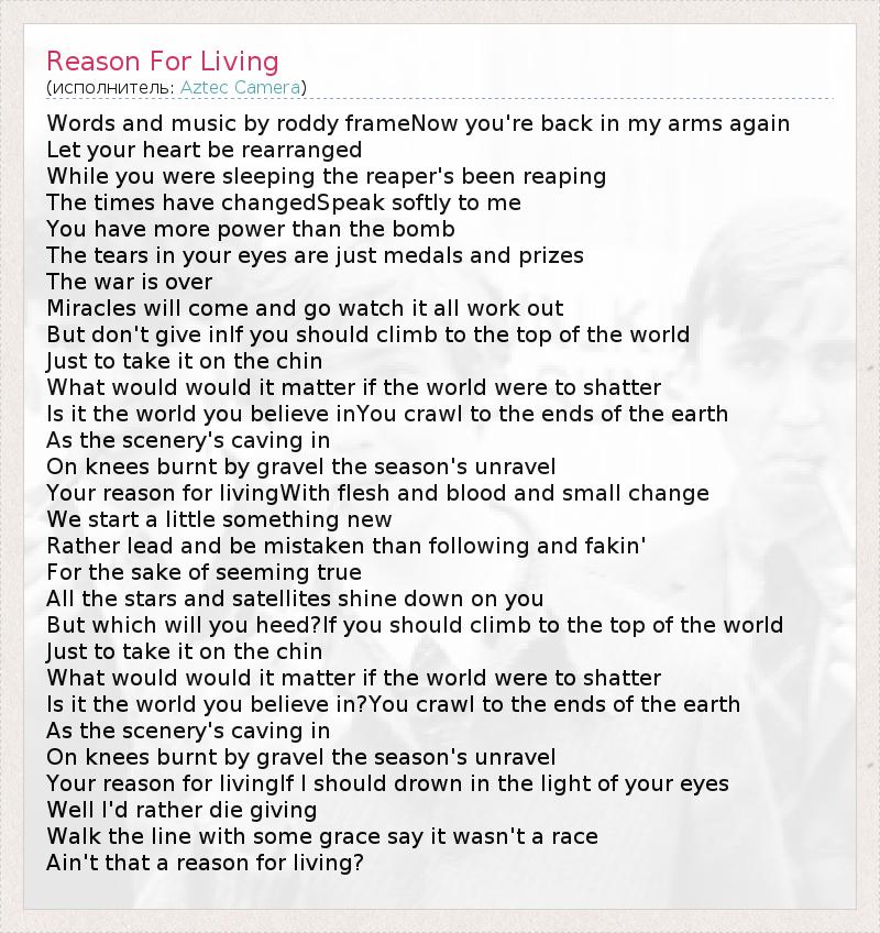 А как ты думаешь, о чем песня "Reason For Living" ?