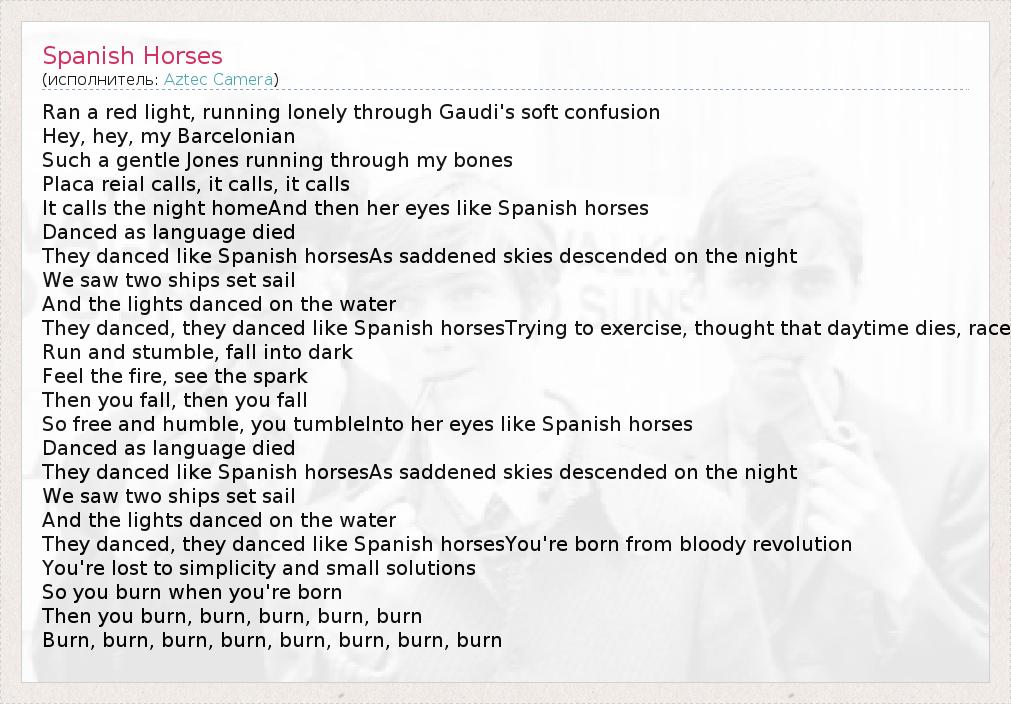 А как ты думаешь, о чем песня "Spanish Horses" ?