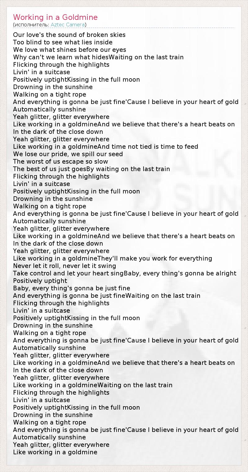 А как ты думаешь, о чем песня "Working in a Goldmine" ?