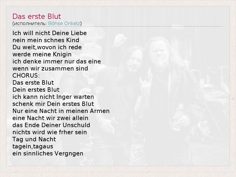 А как ты думаешь, о чем песня "Das erste Blut" ?