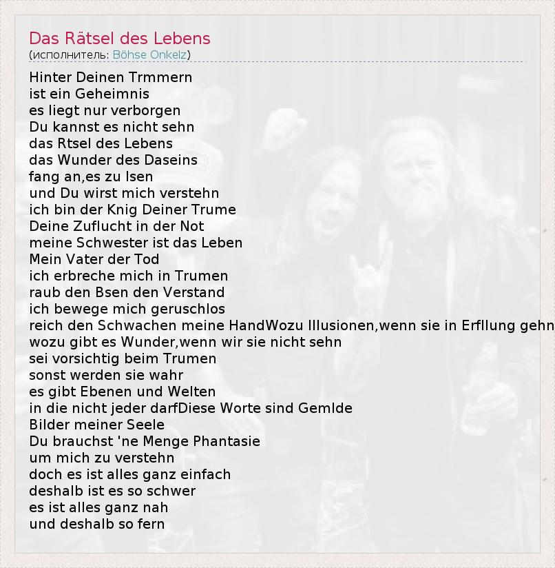 А как ты думаешь, о чем песня "Das Rätsel des Lebens" ?