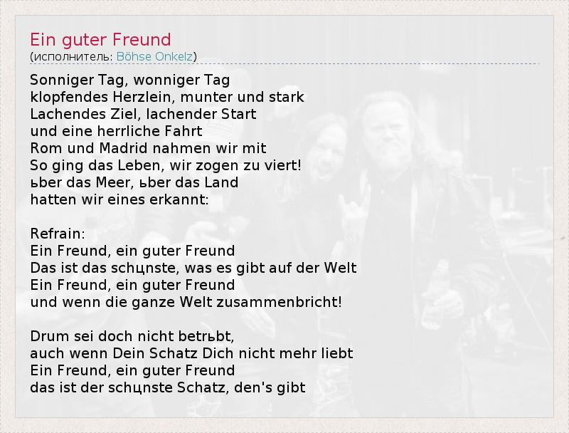 А как ты думаешь, о чем песня "Ein guter Freund" ?