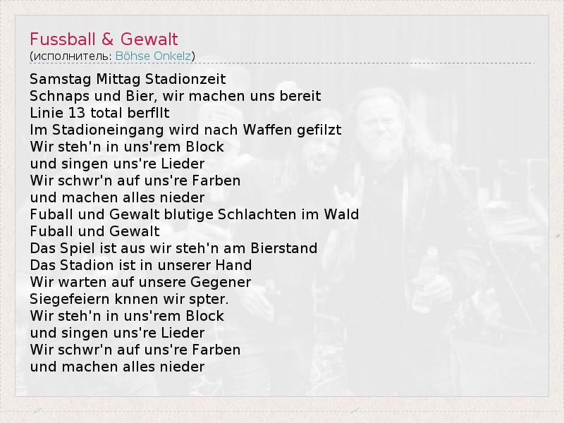А как ты думаешь, о чем песня "Fussball & Gewalt" ?
