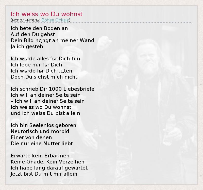 А как ты думаешь, о чем песня "Ich weiss wo Du wohnst" ?