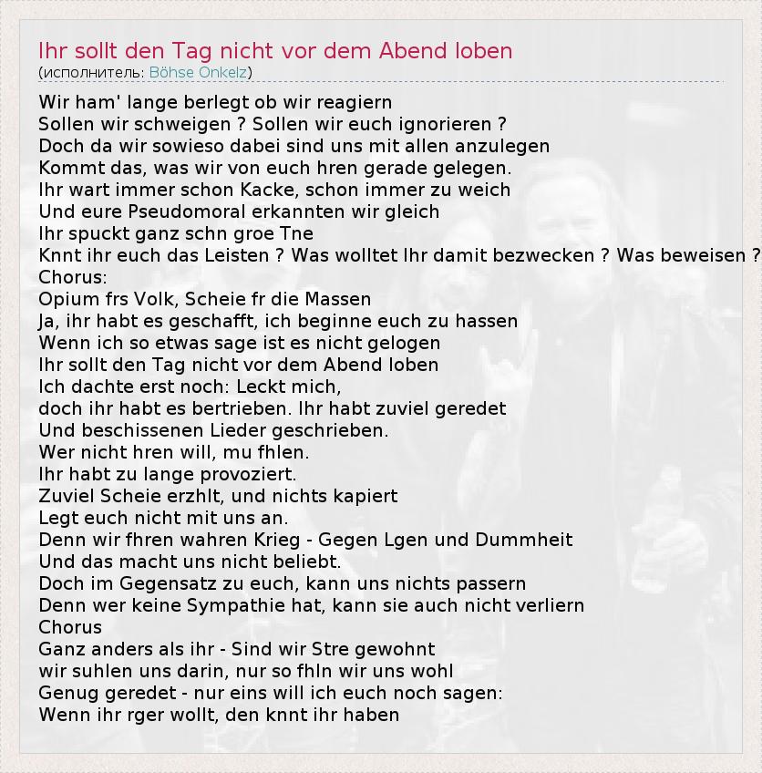 А как ты думаешь, о чем песня "Ihr sollt den Tag nicht vor dem Abend loben" ?