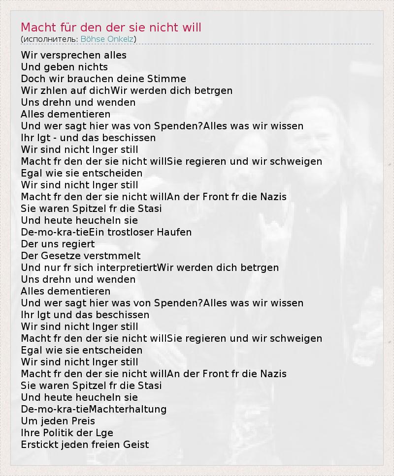 А как ты думаешь, о чем песня "Macht für den der sie nicht will" ?