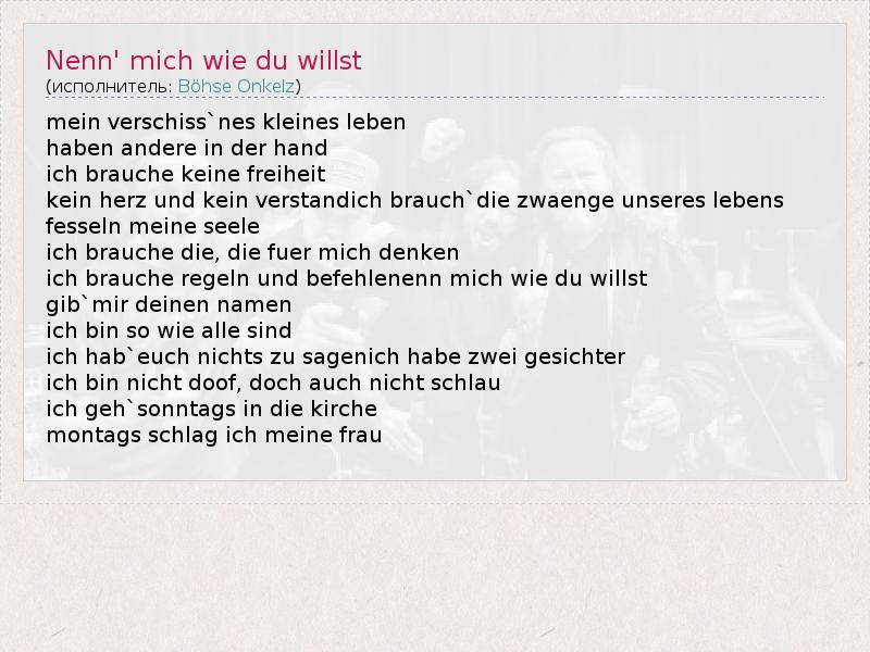 А как ты думаешь, о чем песня "Nenn' mich wie du willst" ?