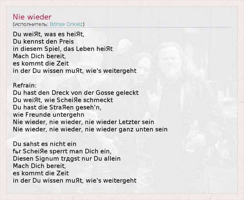 А как ты думаешь, о чем песня "Nie wieder" ?