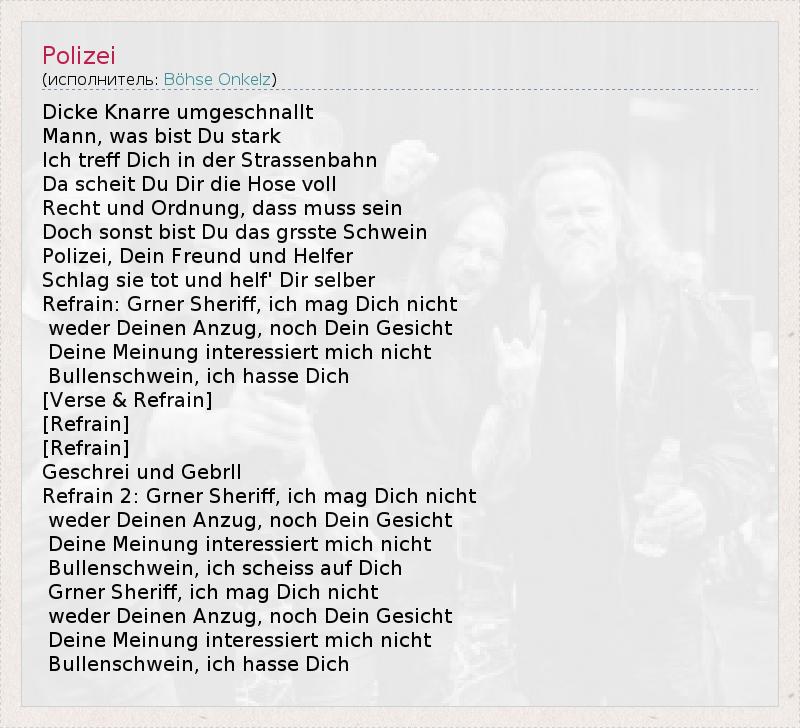 А как ты думаешь, о чем песня "Polizei" ?