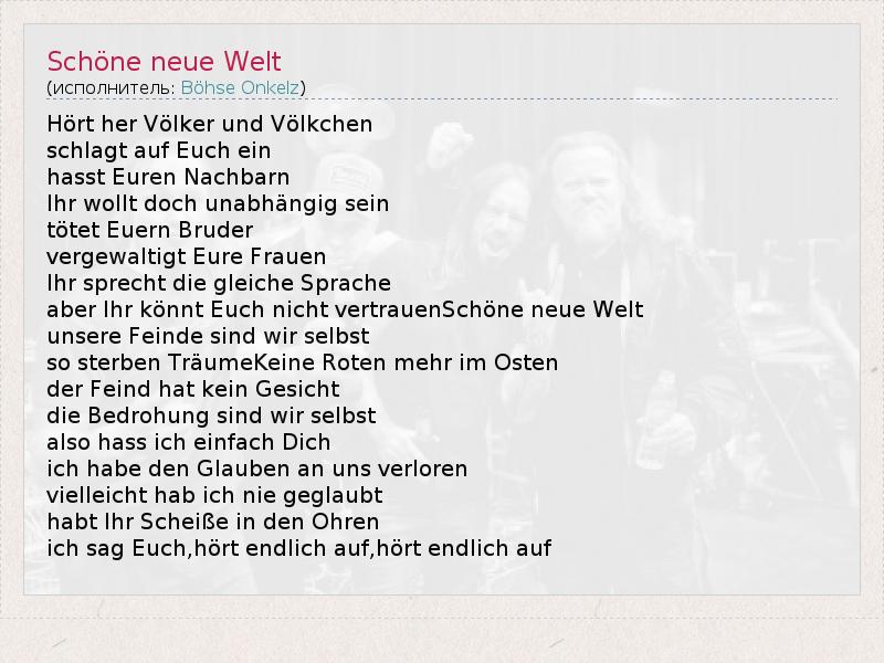 А как ты думаешь, о чем песня "Schöne neue Welt" ?