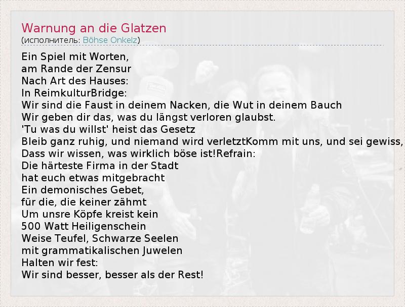 А как ты думаешь, о чем песня "Warnung an die Glatzen" ?