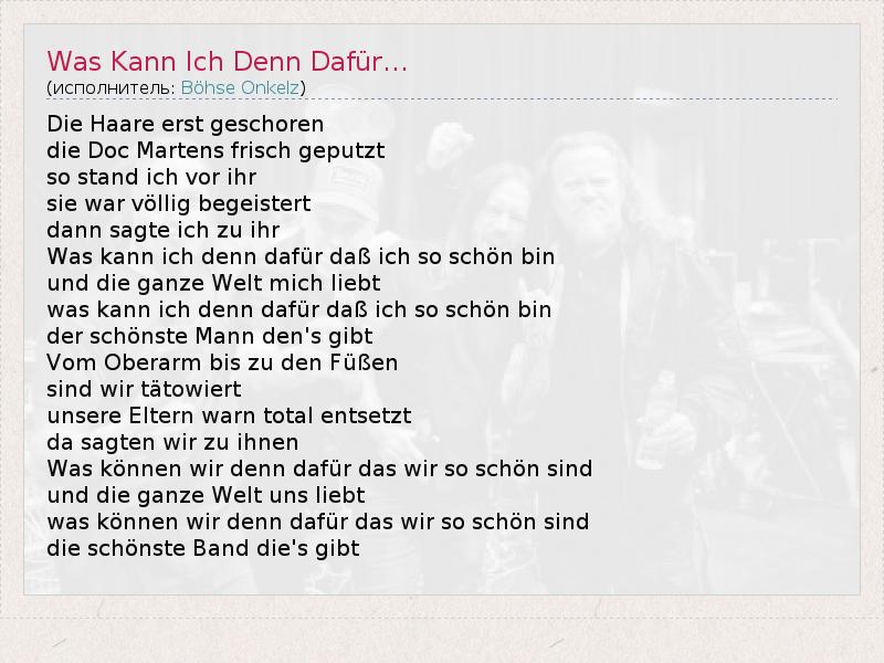 А как ты думаешь, о чем песня "Was Kann Ich Denn Dafür..." ?
