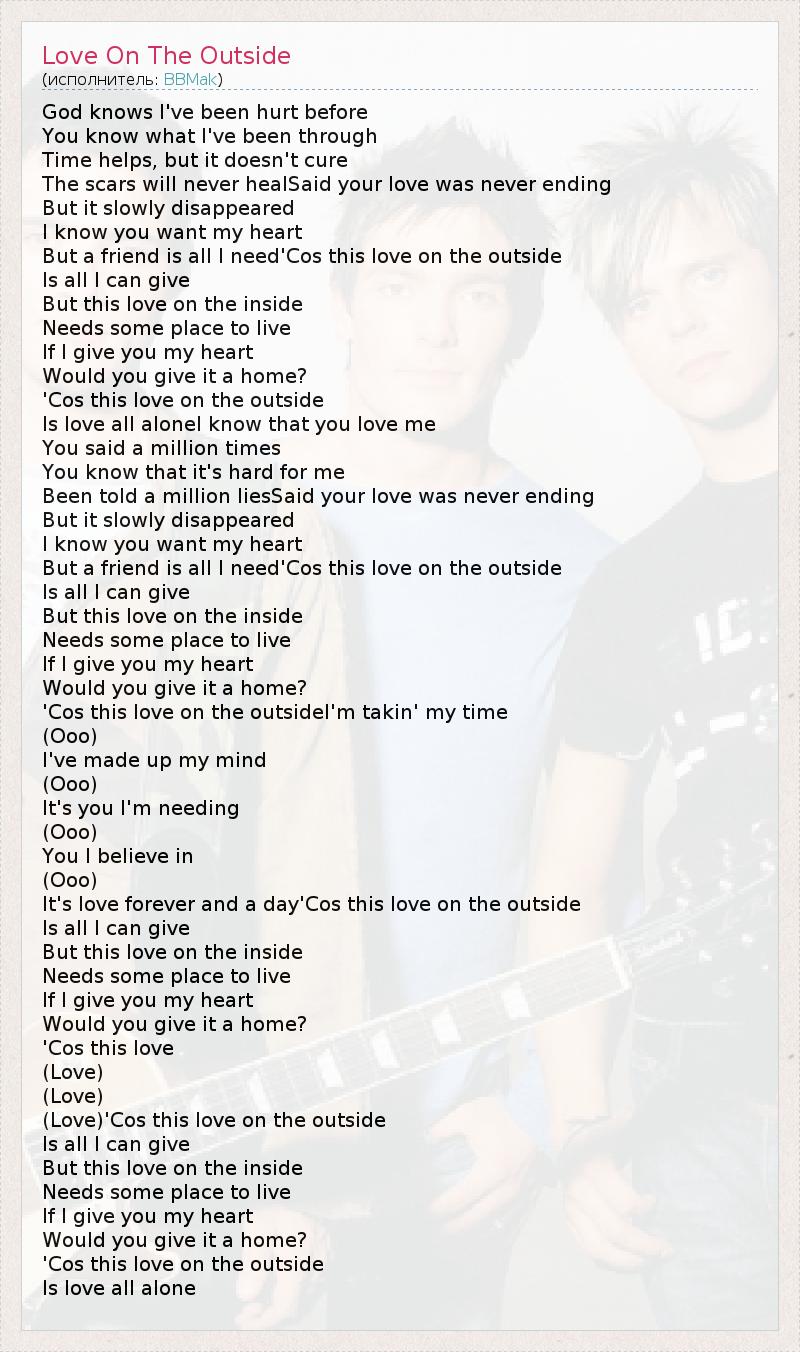 А как ты думаешь, о чем песня "Love On The Outside" ?
