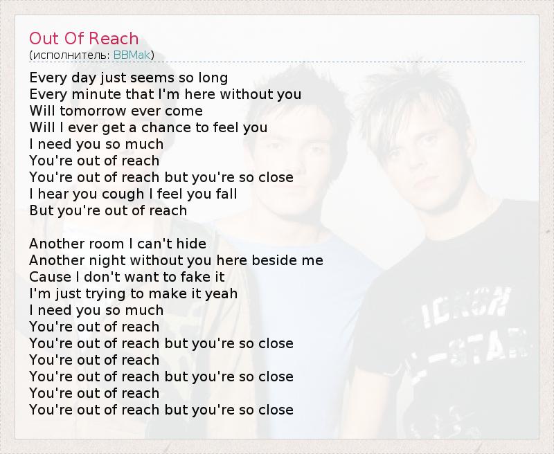 А как ты думаешь, о чем песня "Out Of Reach" ?