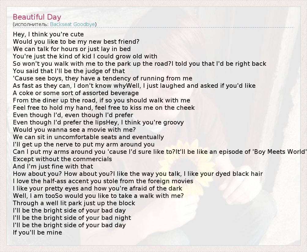 А как ты думаешь, о чем песня "Beautiful Day" ?