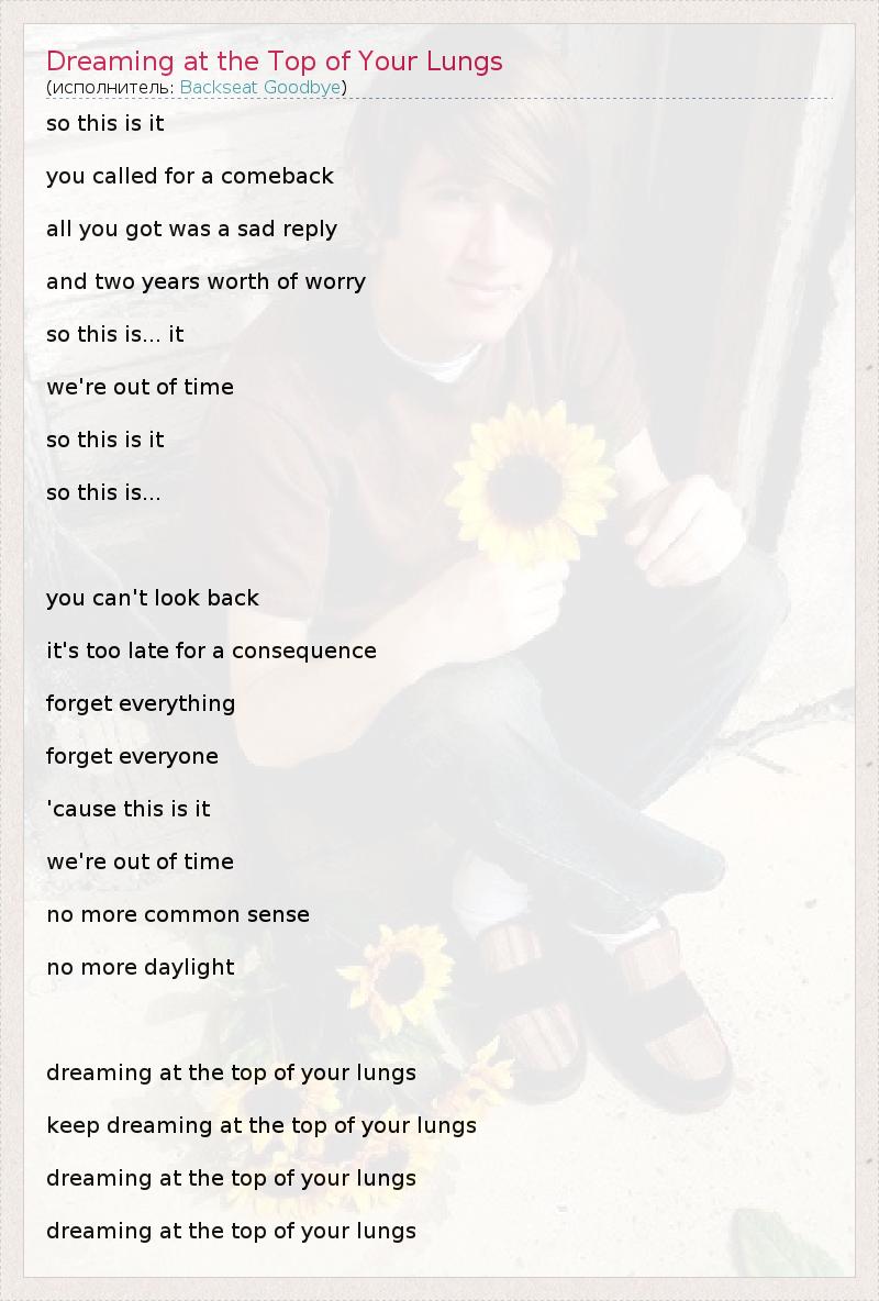 А как ты думаешь, о чем песня "Dreaming at the Top of Your Lungs" ?