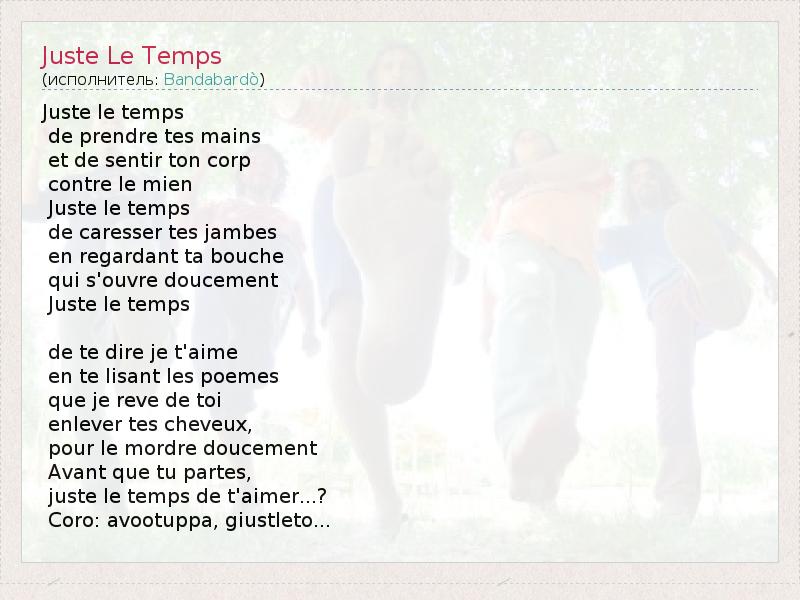 А как ты думаешь, о чем песня "Juste Le Temps" ?