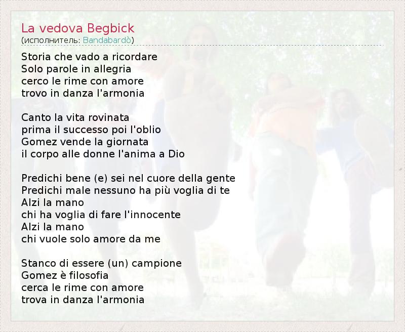 А как ты думаешь, о чем песня "La vedova Begbick" ?