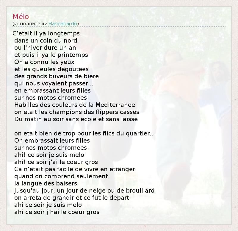 А как ты думаешь, о чем песня "Mélo" ?