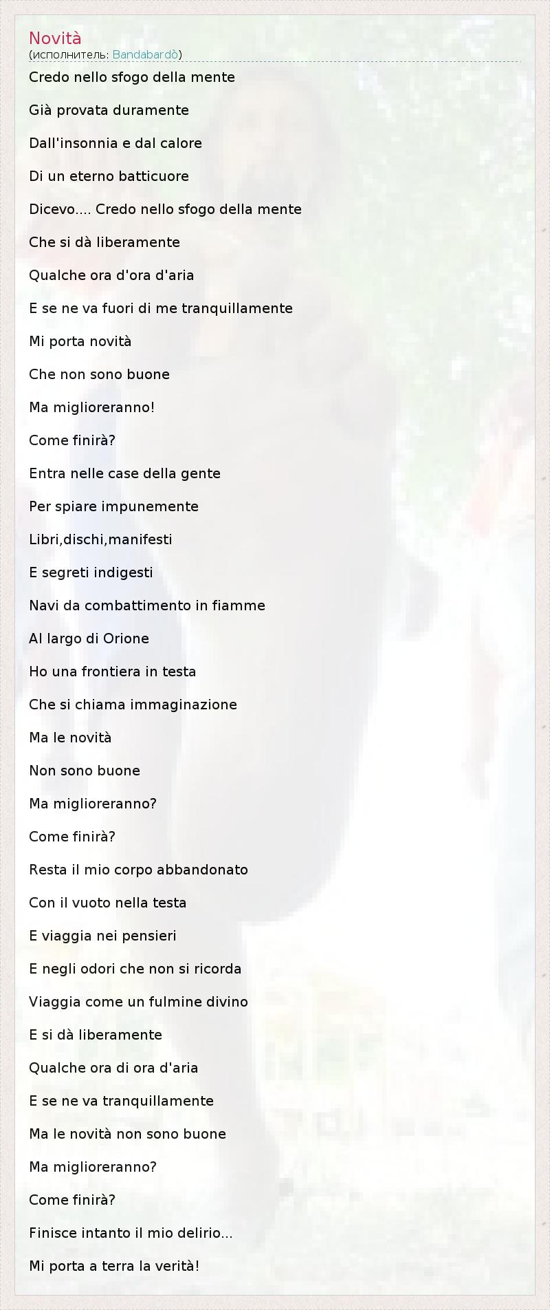 А как ты думаешь, о чем песня "Novità" ?