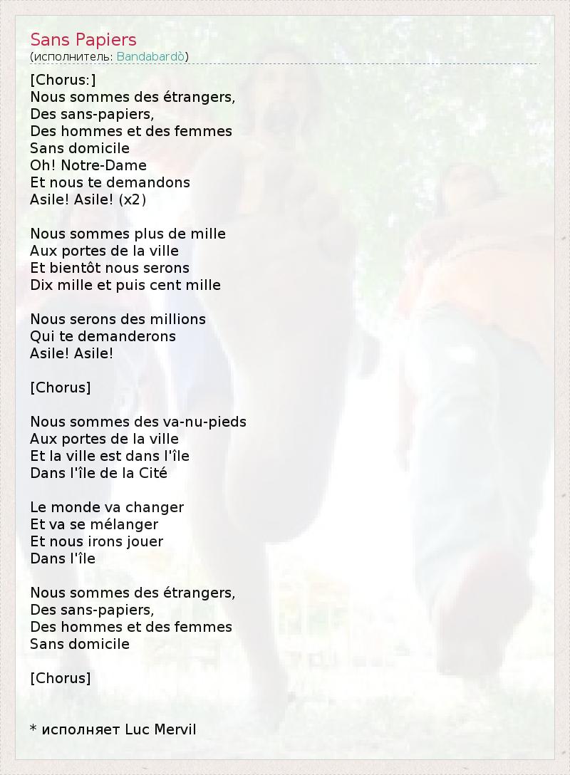 А как ты думаешь, о чем песня "Sans Papiers" ?