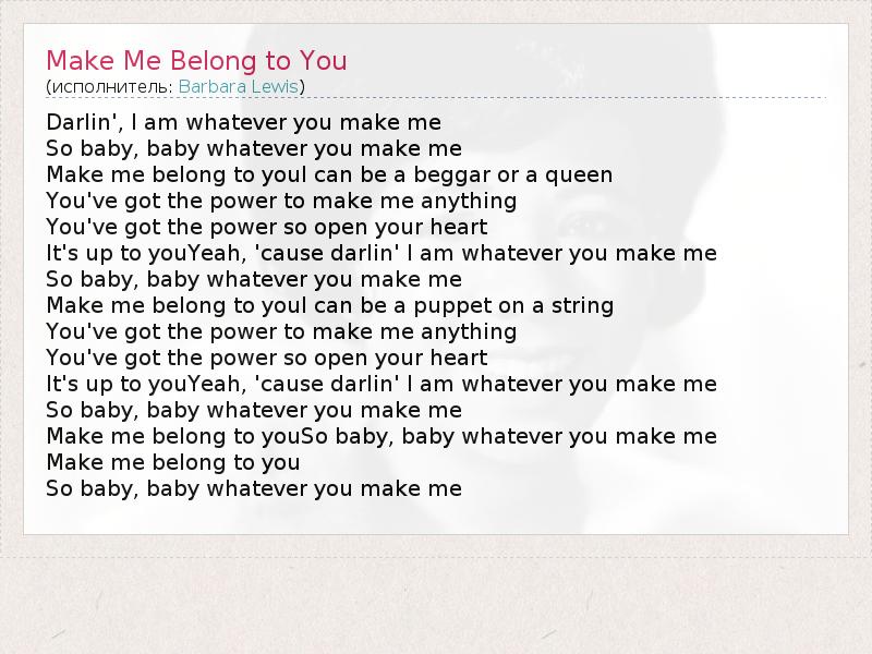 А как ты думаешь, о чем песня "Make Me Belong to You" ?