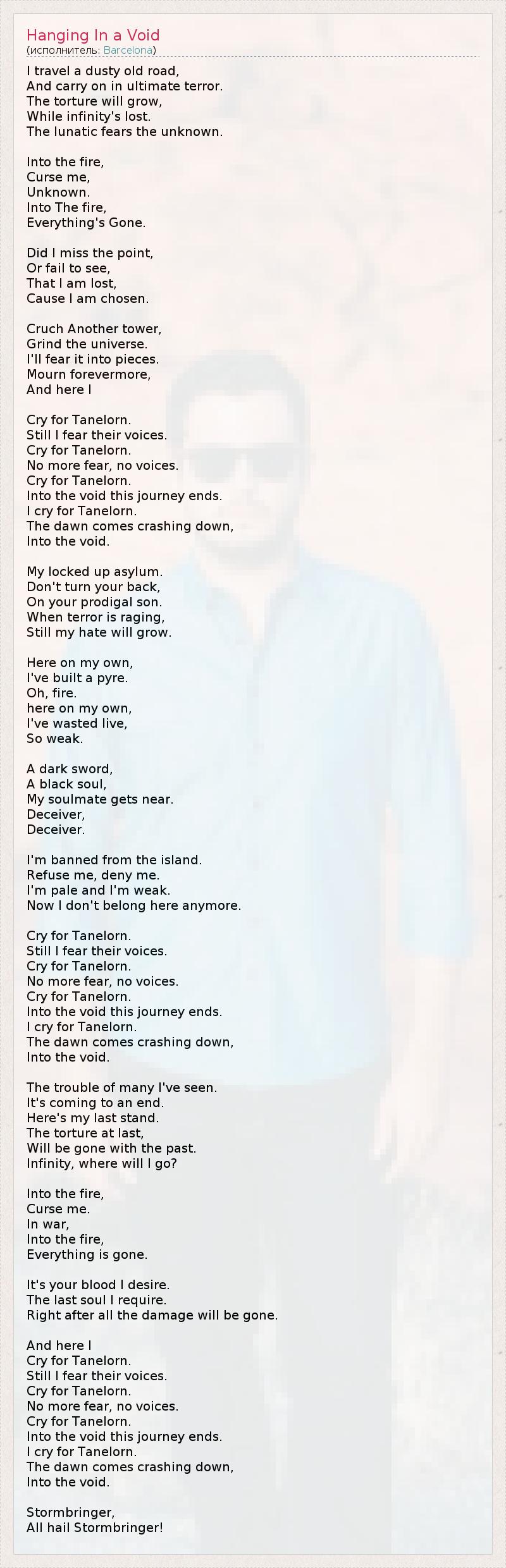 А как ты думаешь, о чем песня "Hanging In a Void" ?