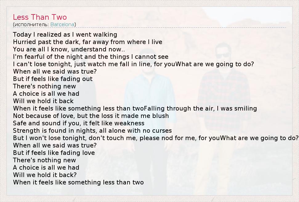 А как ты думаешь, о чем песня "Less Than Two" ?