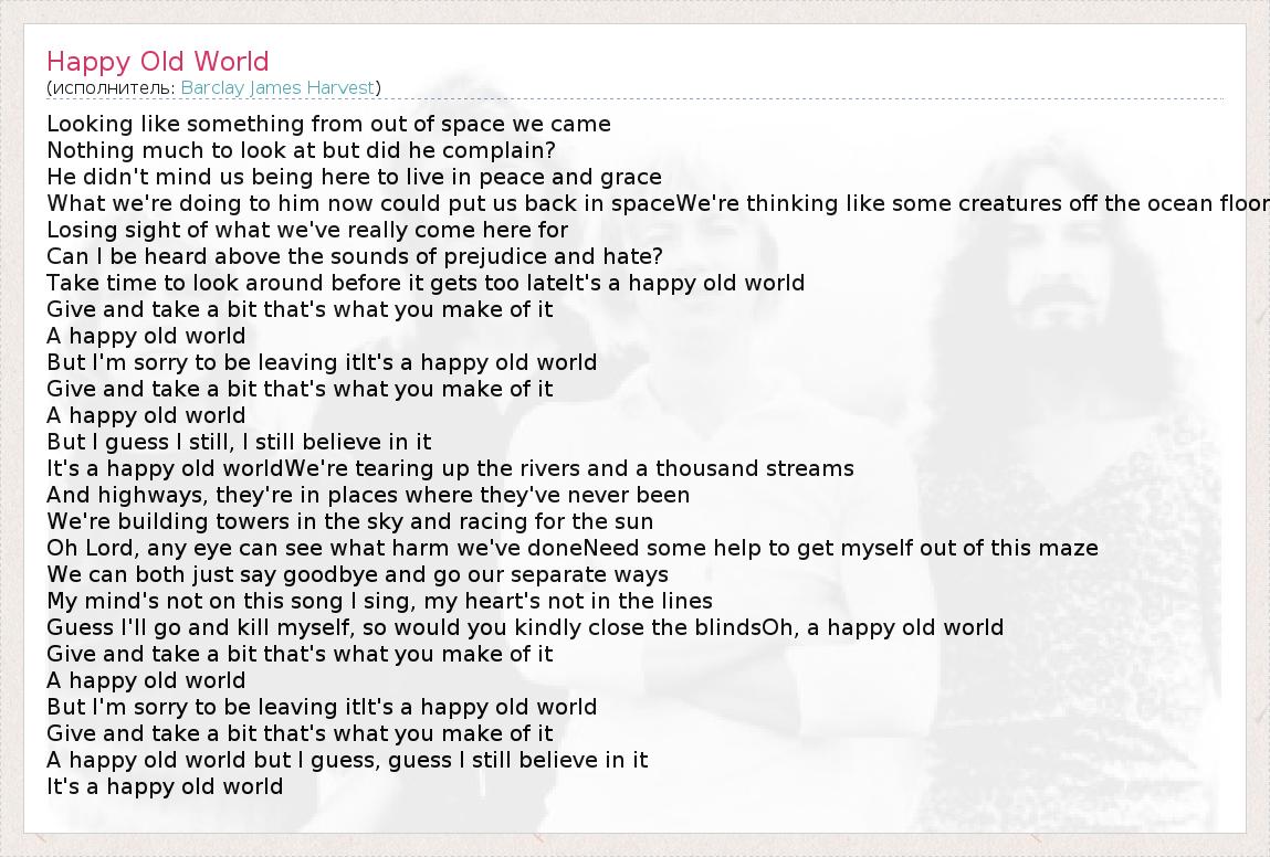 А как ты думаешь, о чем песня "Happy Old World" ?